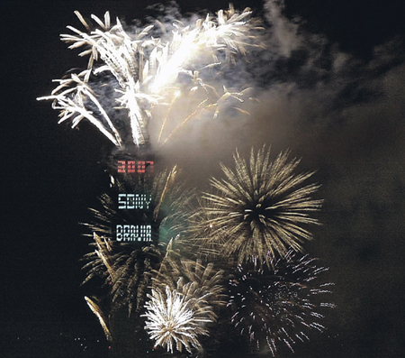 迎接2007年,臺(tái)北地標(biāo)101大樓施放璀璨炫麗的煙火營(yíng)造新年歡樂氣氛。一年又過了,迎接2008的到來!記者侯世駿/攝影