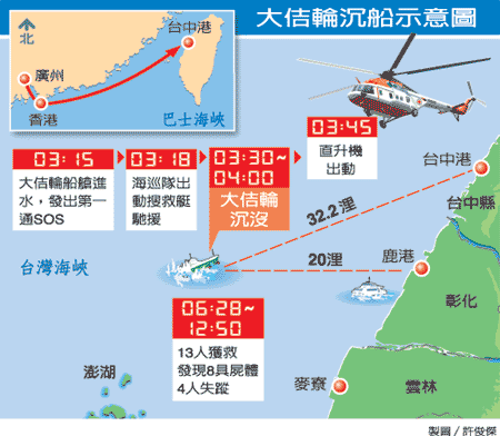 “大佶”輪在臺灣代理商耀太船務(wù)公司說,該公司已派員處理,將等確定死亡船員名單后,與大陸家屬聯(lián)系處理后事。