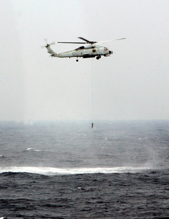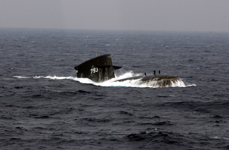 S-2T定翼反潛機投下聲納定位對手潛艇。