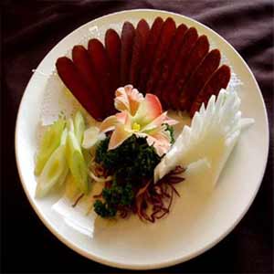 鮪魚就是“金槍魚”,黑鮪魚是東港最有名的漁產(chǎn),產(chǎn)量占臺灣的八成以上,黑鮪魚全身都是寶,用黑鮪魚肉做成的生魚片是上上之品,細膩滑嫩,富含油脂,入口即化,一直是日本人的最愛。因此。黑鮪魚身長1.5至2.5米.體重60至300公斤,最大可達500公斤。