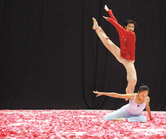 農(nóng)歷大年初五一場(chǎng)大火,燒掉云門舞集的家,浴火后云門再度出發(fā),昨天在數(shù)萬(wàn)片花瓣圍繞下舞新作“花語(yǔ)”。藝術(shù)總監(jiān)林懷民說(shuō),人生有不同風(fēng)景,不見得都是美麗的,“花語(yǔ)”不只有漂亮的花瓣,還有不斷擾人的風(fēng)扇聲,吹動(dòng)著花瓣隨處飄飛,這風(fēng)是人生的風(fēng),不知不覺吹白了頭。(臺(tái)灣《聯(lián)合報(bào)》圖)