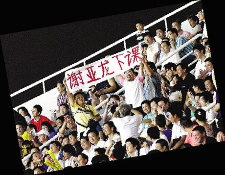 謝亞龍作為中國足協的一把手,在其任期內也是語錄翻新不斷,從亞洲兵敗的吟詩:“恨不抗日死,留作今日羞。國破尚如此,我何惜此頭”到女足奧運無緣四強之后說:“女足該練練叉腰肌。”不過,語錄再多也不能當球踢,國足和國奧糟糕的戰(zhàn)績讓中國球迷們忍無可忍,在很多地方打出了“謝亞龍下課”的標語,而在北京奧運會期間,這句話更取代了“加油”的助威聲。