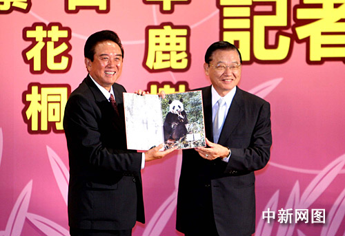 中新網(wǎng)臺北11月6日電 大陸海協(xié)會會長陳云林與臺灣;鶗麻L江丙坤今日上午在臺北出席兩岸互贈珍稀動植物記者會,大陸贈送的除了大熊貓“團(tuán)團(tuán)”、“圓圓”外,還有珙桐樹,臺灣方面回贈的是長鬃山羊和梅花鹿。