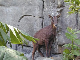 臺灣長鬃山羊為臺灣特有種。它們主要分布在臺灣山區(qū),烏來延伸至中央山脈仍可看到它們的蹤影。其外形為深褐色,喉部為黃色,硬蹄分泌蹄脂腺,有助于攀爬山巖,并牢牢地踩在石縫之間,因此喜在懸崖附近活動,奔跑速度快,若受外力入侵,它們還會以頭上一對向后彎曲的洞角頂人自衛(wèi);平時吃桑葉、鹿構(gòu)樹葉、三黃麻等枝葉、胡蘿卜等。
