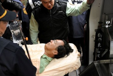 組圖:陳水扁躺在擔(dān)架上打點(diǎn)滴(2)