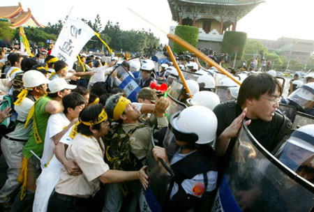 民進黨人士在陳云林訪臺期間“圍城游行”,與警察爆發(fā)多次沖突。