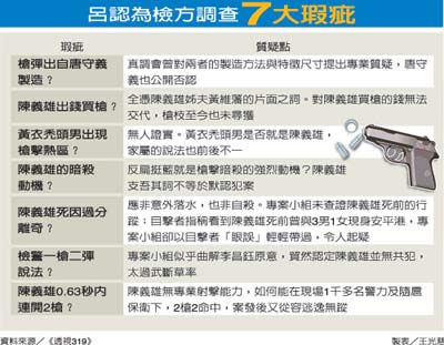 呂秀蓮強(qiáng)烈質(zhì)疑,項(xiàng)目小組自始自終認(rèn)定無(wú)共犯,對(duì)于具特工背景、側(cè)面影像與黃衣禿頭男亦極近似的黃維藩,在案發(fā)前的言行舉止并未深入追查,啟人疑竇。