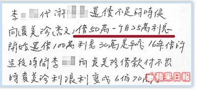 李女說,她20多年前到日本開酒店當(dāng)媽媽桑,后來嫁給日本人生下一女,因日語不流利,時常在臺灣人開的賭場打牌消遣。4年前同為臺灣人的游姓媽媽桑向地下錢莊借錢,用她做保證人,結(jié)果原本150萬日元的借款,其中50萬日元月息高達(dá)25萬日元,一年內(nèi)利滾利竟暴漲到1600萬日元。