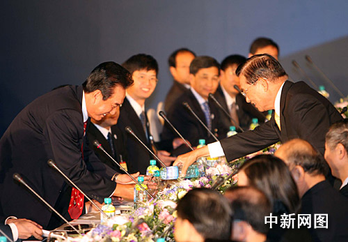 陳云林致詞完畢后,隨即起身為江丙坤倒水。島內(nèi)媒體報(bào)道稱,“充分展現(xiàn)雙方有來(lái)有往的善意和互動(dòng)”。