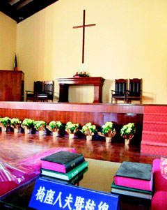 據(jù)《聯(lián)合報》六日報道,日月潭管理處處長曾國基表示,“耶穌堂”位在水社的荷梅園中,管理處近日推出優(yōu)惠結(jié)婚方案,新人還可漫步廊道,飽覽日月潭的湖光山色,晚間欣賞水舞表演。而近日正逢櫻花季,走過櫻花隧道到教堂結(jié)婚,別具風味。