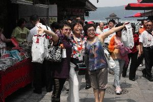 大陸旅游團所搭乘郵輪在臺中港上岸后,轉(zhuǎn)搭四十部游覽車分兩路前往日月潭及中臺禪寺旅游。上、下午兩批團員歷經(jīng)約三十分鐘的游湖賞景后,團員在日月潭商圈停留購物時間也拉長到一小時以上。