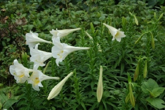環(huán)島公路白沙到馬蹄橋路段、海參坪到綠島朝日溫泉,以及通往觀音亭的公路旁山壁,都是賞百合地點,野百合一簇簇在巖壁上迎風(fēng)搖曳。而在島上步道綠林間,還有玉葉金花、黃槴與華八仙等植物伴隨百合展露花容。