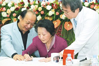 中新網(wǎng)11月18日電 據(jù)臺灣《聯(lián)合報》報道,臺中市長胡志強的夫人邵曉鈴昨天出院,她感謝所有人,并寫“Thank you”感謝醫(yī)師。主治醫(yī)師鄭隆賓說,邵曉鈴大腦受傷,掌管語言、空間與動作的區(qū)域受損,連提筆都困難,筆劃更是擠成一團,字體左右相反,單是名字就學(xué)了兩個多月。