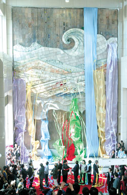 捷運紅線唯一的景點橋頭糖廠,最出名的“枝仔冰”被搶購一空。民眾手拿“枝仔冰”,望著高十二米、寬九米的“天工開物”大型陶壁公共藝術(shù)品,讓維護(hù)清潔的高雄捷運員工焦急不已,擔(dān)心將藝術(shù)品弄臟,想勸阻又怕掃了大家的興致,只好忍下,期待捷運禮節(jié)能慢慢融入民眾心中。