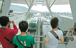 高雄捷運紅線免費試乘首日,吸引許多臺灣民眾前往體驗,還搶個好位置觀賞拍照。(圖:臺灣《中國時報》)