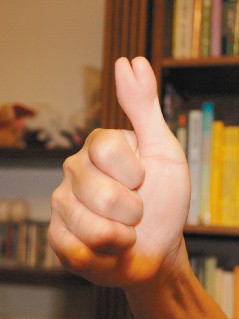 陳姓男子說,“大選”情緊繃,藍(lán)、綠立場愈來愈鮮明,他的右手大拇指硬是比別人多出一個(gè)指頭,時(shí)機(jī)敏感,他自嘲處境尷尬,豎大拇指,泛綠朋友恐錯(cuò)當(dāng)他比V,平日跟支持馬蕭的友人在一起,比起大拇指,明明就是V,就是支持2號馬英九,但又怕支持泛藍(lán)的朋友誤會(huì)他比“1”,是挺綠的。