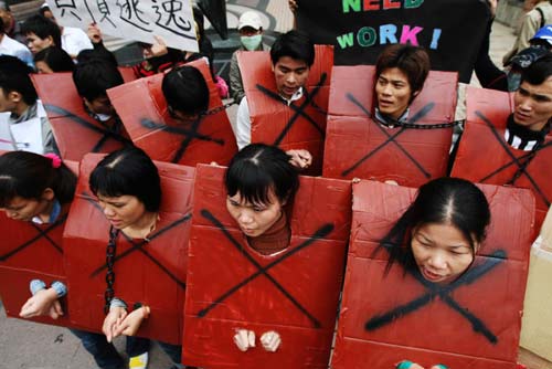 中新網(wǎng)4月24日電 臺灣移工聯(lián)盟等關(guān)懷外勞人權(quán)團(tuán)體今天帶領(lǐng)許多外籍勞工到臺灣當(dāng)局“勞委會”門口,抗議外勞政策粗糙。