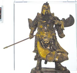 中新網(wǎng)5月6日電 一尊面帶威嚴(yán)、與真人一般高的銅制關(guān)公像矗立在臺(tái)中縣太平分局,經(jīng)過(guò)的人看了,一股正義感油然而生。其實(shí),這尊關(guān)公像是現(xiàn)任分局長(zhǎng)郭瑞權(quán)的私人收藏,他說(shuō),這么作是藉此提醒大家,要效法關(guān)公的正義之氣。