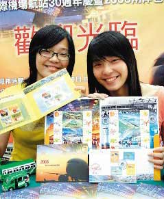 桃園郵局為了迎接兩岸包機直航,加上桃園國際機場航空站30周年慶,明天起將推出限量5000套直航個人化郵票,每套售價新臺幣300元,為了配合不同的主題,因此明天所蓋紀念郵戳為“桃園國際機場航空站30周年”,7月4日當天所蓋紀念郵戳則是“2008兩岸周末客運包機首航志慶”。