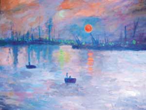 中新網7月9日電 莫內名畫“印象‧日出”,也有“日落”、“夜幕”版嗎?據臺灣《聯(lián)合報》報道,臺大機械工程系教授黃秉鈞利用調控投射在名畫上的彩色LED光源,制造出名畫不同風貌,發(fā)展出嶄新的“LED歐普藝術”。
