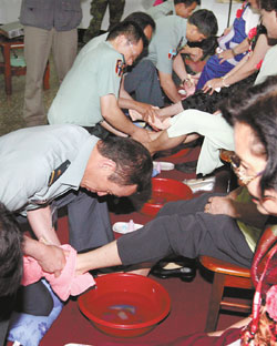 據(jù)臺(tái)灣《中國(guó)時(shí)報(bào)》報(bào)道,六軍團(tuán)弘揚(yáng)孝道,除了由單位主官要求官兵多打電話回家問(wèn)候父母外,甚至鼓勵(lì)官兵嘗試回家為自己辛苦的母親洗腳,以對(duì)母親表達(dá)孝順之意,五月時(shí)更藉模范母親表?yè)P(yáng)活動(dòng),在內(nèi)部舉辦跪地為母洗腳的儀式,據(jù)說(shuō)場(chǎng)面相當(dāng)感人,在場(chǎng)所有參與的官兵和家屬都感動(dòng)落淚。