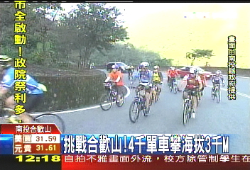 據(jù)臺灣TVBS報道,4000多輛自行車挑戰(zhàn)合歡山,出了市區(qū),上山路全是難關。合歡山公路超大斜坡,開車的只要輕踩油門,但這些自行車騎士踩踏板的頻率已經(jīng)像在跑步,卻只能緩慢爬升。
