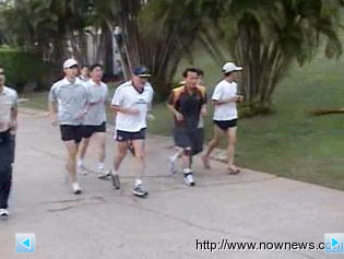 中新網(wǎng)9月12日電 由于馬英九非常喜歡跑步和游泳,臺(tái)灣安全部門為此特別要求所有的特勤人員每45天都要接受一次體能測驗(yàn),受測人員必須在一天之內(nèi)同時(shí)完成跑步3000米、游泳500米以及伏地挺身仰臥起坐等各種測驗(yàn),要是沒有過關(guān),立刻遣回原單位。