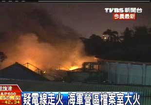 營區(qū)有關(guān)人員表示,可能是檔案室的電線走火引發(fā)火警,沒有人員傷亡,正由司令部調(diào)查起火原因。