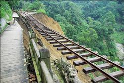 中新網(wǎng)10月15日電 阿里山森林鐵路再傳新災(zāi)情,該鐵路一路段12日下午發(fā)生走山,近70米路基轟然一聲,滑落近百米深的山谷中,僅剩鐵軌如吊掛鋼絲,懸掛半空中,所幸森鐵早已因風(fēng)災(zāi)受創(chuàng)未搶通而停駛中,無(wú)人傷亡。鐵路通車期因此從原來(lái)的11月底,延后到明年1月底。