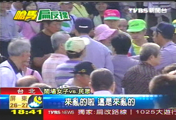 報(bào)道說(shuō),鬧場(chǎng)女子反對(duì)游行中所謂的“嗆中”訴求,高聲嗆聲說(shuō):“我們自己人斗自己人,都是自己人,你們還罵!你要抓誰(shuí)?”鬧場(chǎng)小姐被拉到路障旁,依然照嗆,現(xiàn)場(chǎng)亂成一團(tuán)。