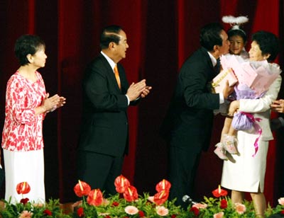 小喻安目前已是健康可愛的小女娃,陳朝福應(yīng)親民黨主席宋楚瑜的邀請(qǐng),帶著小喻安出席中午在圓山飯店的宴會(huì)場(chǎng),手持鮮花花束,當(dāng)面向陳云林、賴曉華伉儷表達(dá)感謝,賴曉華忍不住抱起穿著白色小公主裝的小喻安,陳云林也在旁輕輕拍著小喻安,場(chǎng)面相當(dāng)溫馨。