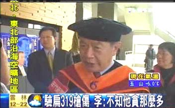 中新網(wǎng)12月6日電 據(jù)臺(tái)灣TVBS報(bào)道,國(guó)際知名鑒識(shí)專家李昌鈺博士5日前往臺(tái)灣正修科大接受名譽(yù)博士學(xué)位,還特地發(fā)表專題演講,對(duì)于扁家傳出洗錢弊案,李昌鈺說(shuō)當(dāng)初他鑒識(shí)陳水扁319槍傷時(shí),沒想到他會(huì)貪那么多錢,對(duì)此他深感難過。
