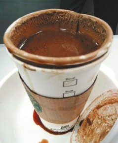 中新網(wǎng)12月11日電 據(jù)臺灣《聯(lián)合報》報道,有顧客指出在臺灣星巴克購買的咖啡,喝下后感到反胃想吐,咖啡散發(fā)惡臭,杯身還軟化變形,事后星巴克坦承咖啡中含有濃縮清潔劑。該顧客要求求償新臺幣300萬。