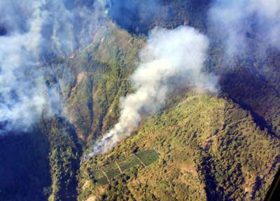 阿里山公路69公里路段邊坡處自12日凌晨1時(shí)24分傳出森林大火以來(lái),已經(jīng)延燒2天2夜,今天進(jìn)入第3天,目前已燒毀18.2公頃的草生地。