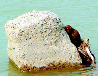 據(jù)臺(tái)灣聯(lián)合報(bào)報(bào)道,林務(wù)局工作站人員昨天上午經(jīng)過(guò)高雄縣旗山鎮(zhèn)旗尾溪,發(fā)現(xiàn)有只臺(tái)灣小獼猴受困溪中,緊抱著溪中大石面對(duì)滾滾洪流動(dòng)彈不得。