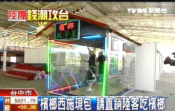 臺灣TVBS報道,在大陸安利公司游客即將到來的會場里,原本路邊隨處可見的檳榔攤被原封不動搬進(jìn)會場,18日當(dāng)天還會請來“正港”檳榔西施現(xiàn)場包檳榔給大陸游客品嘗品嘗,為的就是讓大陸人感受真實(shí)的臺灣生活。