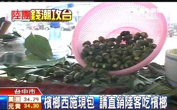 據(jù)悉,屆時會場將擺30多個攤位,全部都是臺灣地道小吃,連檳榔攤都入列,就是要讓大陸游客嚼嚼看“滿嘴紅紅”的滋味感受,以體驗一下這種臺灣味。