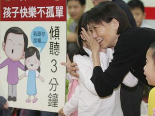 臺“兒童福利聯(lián)盟文教基金會”今天上午舉辦“臺灣兒童快樂生活大調(diào)查”發(fā)表記者會,邀請周美青到場與20多名國小學(xué)童對談,由周美青與基金會董事長馮燕擔(dān)任老師,傾聽小朋友心聲,并詢問小朋友課業(yè)、休閑及困擾等問題,小朋友答詢活潑可愛,過程中歡笑聲不斷。