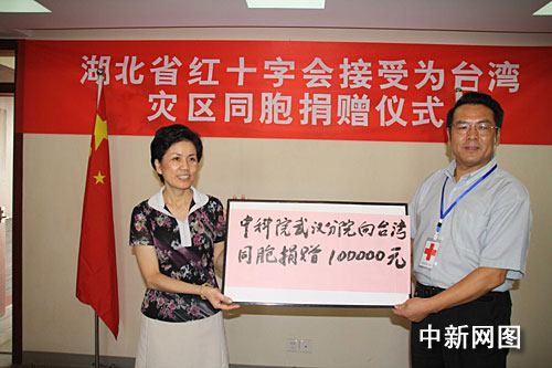 除上述100萬(wàn)元人民幣的捐款外,連日來(lái),已陸續(xù)有武漢市民在湖北省紅十字會(huì)登記捐贈(zèng)。8月19日下午,湖北省紅十字會(huì)機(jī)關(guān)也開展了募捐活動(dòng),湖北省紅十字會(huì)專職副會(huì)長(zhǎng)毛三元帶頭捐款500元人民幣。中國(guó)科學(xué)院武漢分院黨組書記、常務(wù)副院長(zhǎng)陳平平專程趕到湖北省紅十字會(huì),代表該院向臺(tái)灣同胞捐贈(zèng)10萬(wàn)元人民幣。