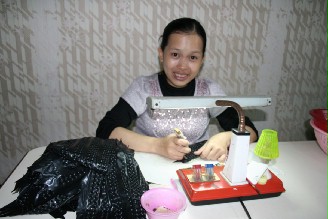 莫愛芳現在已懷胎八個月,前天領完獎,昨天照樣上菜市場買菜,一回家就做家庭代工,臥室里堆滿布偶,“我喜歡動物,老公買給我的。”