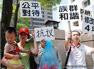 大陸配偶在臺(tái)權(quán)益遭受歧視,臺(tái)灣一團(tuán)體組織12日前往“立院”抗議,要求公平對(duì)待同時(shí)為大陸配偶爭權(quán)益。圖片來源:臺(tái)灣“今日新聞”