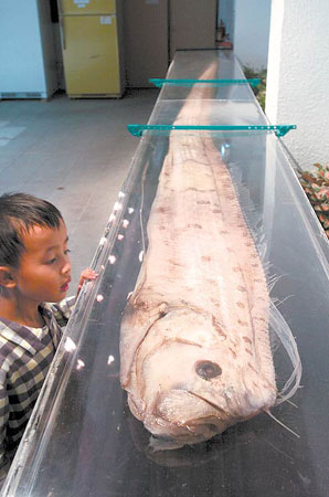 中新網(wǎng)10月22日電 據(jù)臺灣《中國時報》報道,臺灣“中研院”二十日開放院區(qū)供民眾參觀,許多該院特有的研究“寶物”引人注目,一位小朋友就緊盯生物多樣性博物館標本“皇帶魚”直直看,不禁問:天啊,這是從哪來的呢?