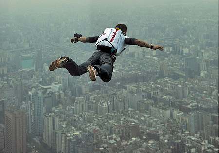 奧地利極限玩家Felix Baumgartner挑戰(zhàn)高樓跳傘,十一日在臺(tái)北一○一大樓頂樓一躍而下,完成自世界最高樓跳傘的任務(wù)。Baumgartner自三年前一○一大樓完工后便躍躍欲試,經(jīng)過(guò)兩次實(shí)地勘查之后,于十一日下午四點(diǎn)十八分自高樓跳下,經(jīng)過(guò)五秒鐘自由落體后成功打開(kāi)降落傘安全降落。《中國(guó)時(shí)報(bào)》圖