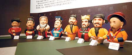 臺灣第二屆數(shù)字典藏商業(yè)應(yīng)用大賽得獎作品公布,臺灣藝術(shù)大學(xué)三年級學(xué)生倪敏,把歷代皇帝變成Q版公仔(玩偶),創(chuàng)作《萬歲爺——三皇五帝》系列公仔,勇奪人物玩偶設(shè)計(jì)組第一名。 《中國時(shí)報(bào)》圖 李宗佑 攝