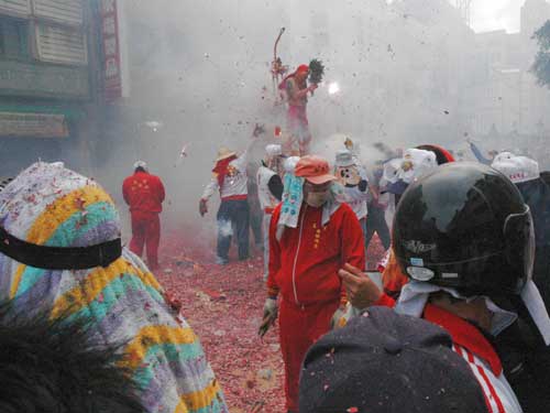 圖:臺(tái)東元宵節(jié)“炮炸寒單爺”