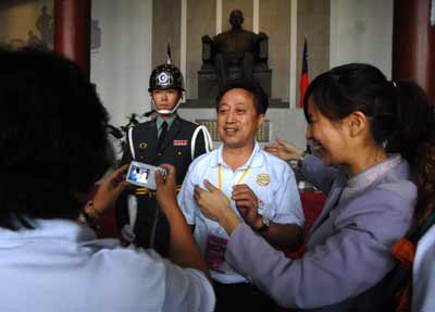 兩岸周末包機(jī)四日啟動(dòng),廣州首發(fā)旅游團(tuán)抵臺(tái)后即前往臺(tái)北“國(guó)父紀(jì)念館”參觀,正好看到三軍儀隊(duì)表演,感到很興奮,手中相機(jī)拍不停。