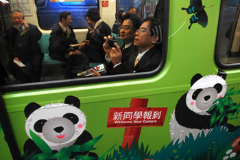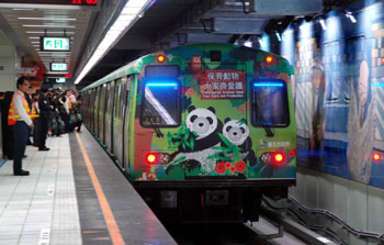 中新網(wǎng)12月25日電 據(jù)“中央社”報(bào)道,臺(tái)北市捷運(yùn)南港線南港車站25日通車啟用,首班啟用的是臺(tái)北市動(dòng)物園“熊貓彩繪列車”。