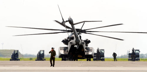 美軍派遣直升機(jī)首度來臺進(jìn)行人道救災(zāi),昨臺灣災(zāi)害應(yīng)變中心公開發(fā)布訊息,都指來臺援助的是CH-53E“超級種馬”運兵直升機(jī),結(jié)果美軍昨天飛來的直升機(jī),外型看起來和CH-53E不一樣,當(dāng)下連臺灣軍方都傻眼,原來這架直升機(jī)是另一型MH-53E“海龍”掃雷直升機(jī)。不過軍方強(qiáng)調(diào),兩種直升機(jī)雖不同型,但屬同款,一樣可以協(xié)助吊掛怪手救災(zāi)。