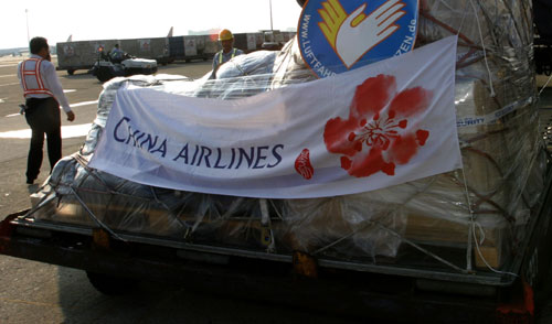 德國民間救援組織“航空無國界協(xié)會”捐贈1噸的毛毯、睡袋及帳蓬等人道救援物資,也于今天清晨6時40分運抵桃園機(jī)場。另外,加拿大政府將捐贈5萬加幣,并捐助20萬枚氯錠,供災(zāi)區(qū)重建。