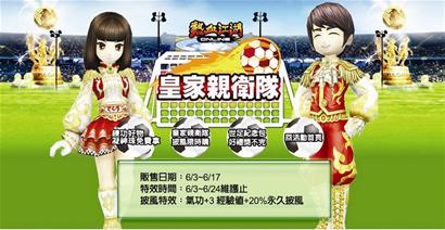 臺(tái)灣網(wǎng)游廠商也夠聰明,他們推出了應(yīng)景的世界杯風(fēng)格裝備產(chǎn)品。目前臺(tái)灣最熱血的武俠網(wǎng)游非華義旗下的“熱血江湖”莫屬。6月正值該游戲的改版升級(jí)階段,游戲服務(wù)商就順勢(shì)將6月打造成了“世足月”。其中最令球迷玩家興奮的就是,游戲地圖中將新增綠茵場(chǎng)為全新場(chǎng)景,游戲裝備也同步推出新款披風(fēng)“皇家親衛(wèi)隊(duì)”。這款披風(fēng)除了可以幫助玩家增加經(jīng)驗(yàn)值、氣功攻擊力之外,還能讓玩家為自己喜愛的球隊(duì)加油打氣,在游戲中體驗(yàn)拉拉隊(duì)的歡樂(lè)氛圍。(導(dǎo)報(bào)記者 燕子 綜述)